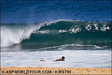 A significant swell slated to arrive tomorrow and build into Thursday has prompted event officials to put the Roxy Pro Hawaii on hold again today. The one to three foot (1 meter) conditions that were on offer at Alii Beach Park in Halewia this morning are predicted to increase in size to six to eight feet (2 to 2.5 meters) by tomorrow afternoon, and peak at almost double that on Thursday.[/i]Though the Roxy Pro Hawaii can be run in its entirety in just two days, the event is being held in tandem with the Op Pro Hawaii, a six-star prime mens World Qualifying Series (WQS) event that requires roughly four days of surfing to complete. Both events are the first of three in the Vans Triple Crown of Surf series. The ensuing events include the men and womens O’Neill World Cup of Surfing held at Sunset from November 25 to December 6, followed by the womens Billabong Pro Maui and mens Rip Curl Pipeline Masters running December 8-20.